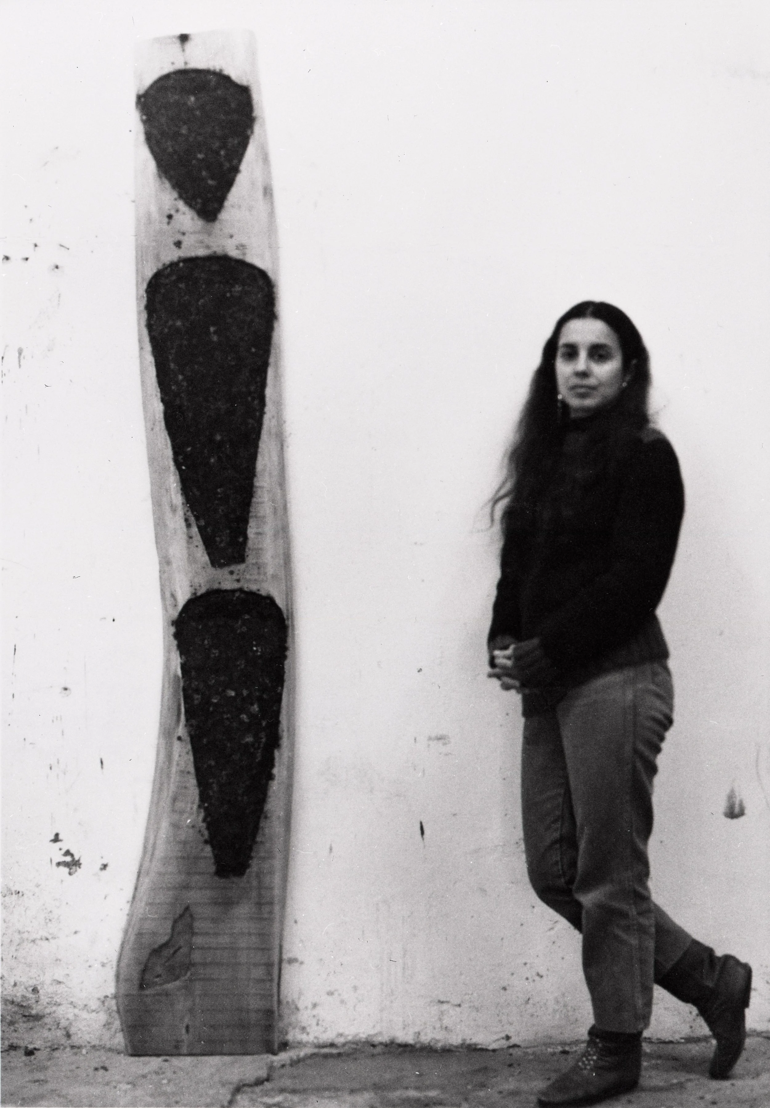 Ana Mendieta in Rome with Untitled sculpture c. 1984